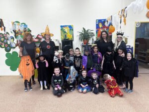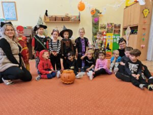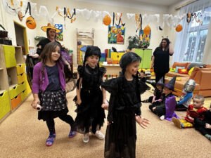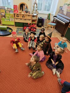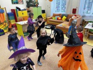 Vyvrcholením celého týdne byl Halloweenský bál. Děti v zůstaly doma a místo nich přišla do školky strašidla, která si zatančila v divokém reji.